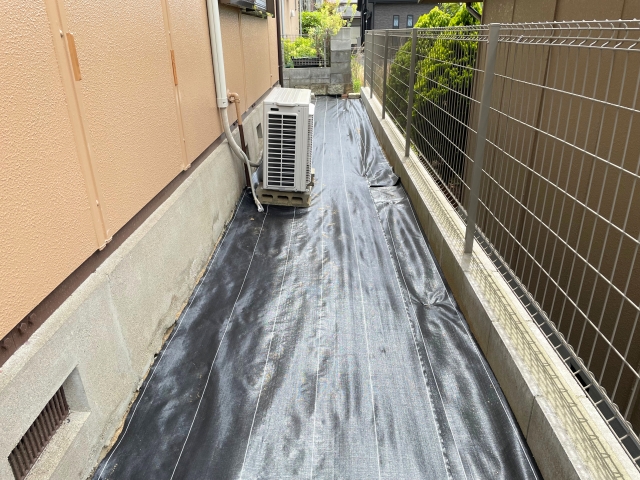 防草シートは、雑草の生長を抑制する効果があり、砂利との併用でより効果的な雑草対策になります。